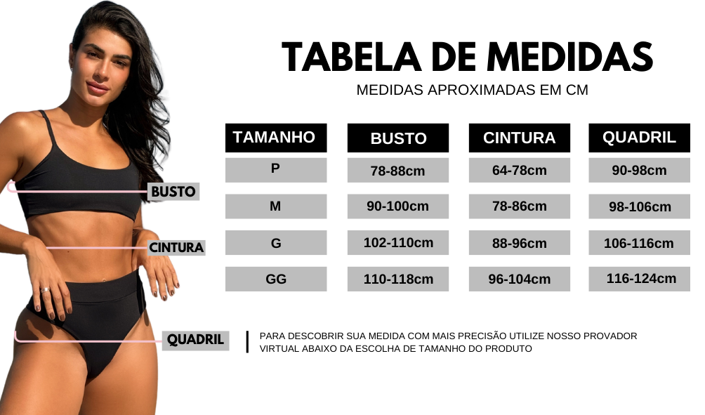 Além de ser ideal para a praia, o biquíni pode ser usado em diversas ocasiões, criando looks modernos e despojados. Não perca a chance de ter um biquíni que vai te acompanhar em seus melhores momentos.