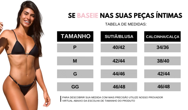 A calcinha é fio dental, com as laterais em fita de regulagem, permitindo o ajuste perfeito e garantindo conforto e praticidade na hora de vestir.