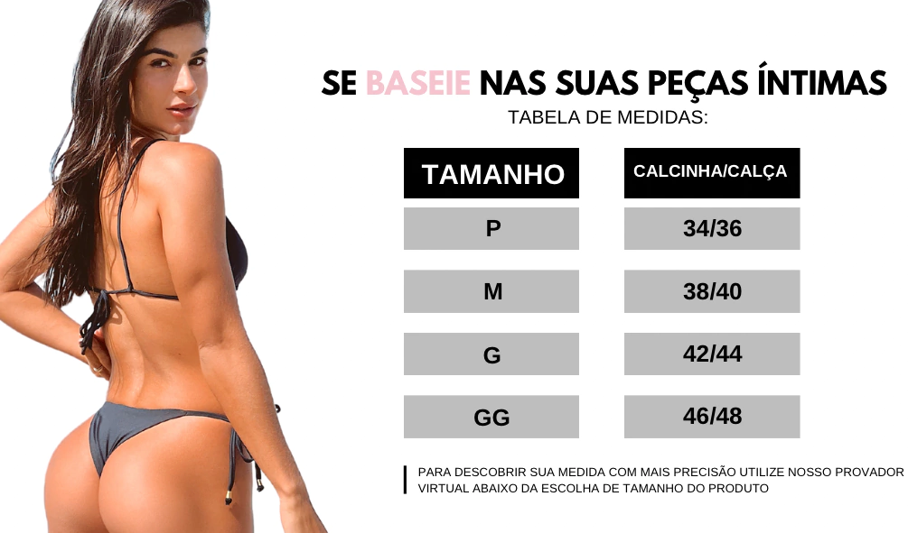 O Biquíni Luna é o modelo perfeito para quem busca conforto e estilo. A calcinha de lacinho nas laterais com detalhes banhados a ouro é um charme à parte. Com os devidos cuidados, esse detalhe não oxida, garantindo que você possa usar o biquíni por muitos verões. Além disso, a versatilidade desse modelo permite que você use a parte de cima como um top, combinando com saias, shorts ou calças para um look mais casual.